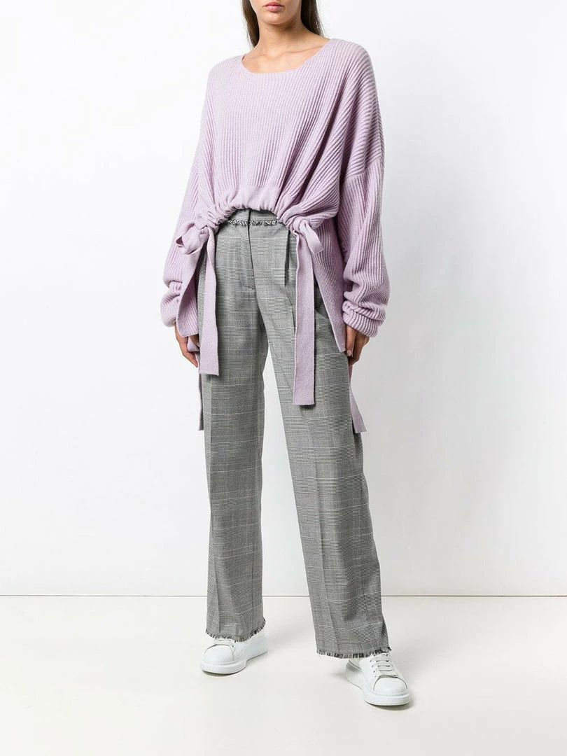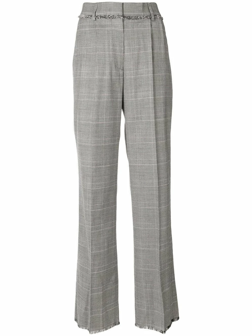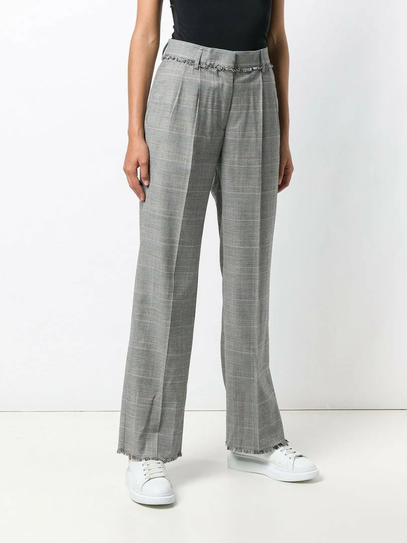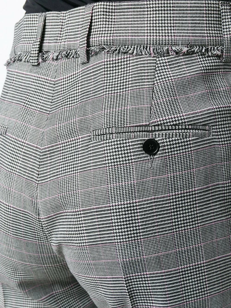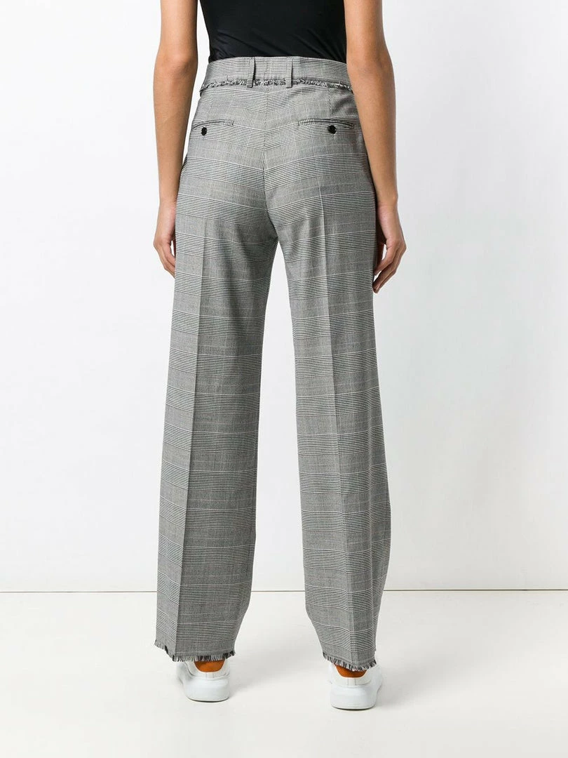MSGM black, white and pink wool blend ‘houndstooth’ flared trousers featuring a concealed button and clasp fastening, concealed front zip fastening, belt loops along the waistband, side pockets, back slip button pockets, flared style, pleated detail, frayed unfinished ankle hemlines. Item fits true to size. Model is wearing a size 40 IT.