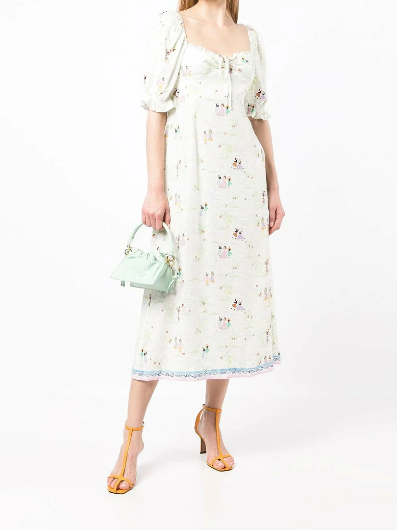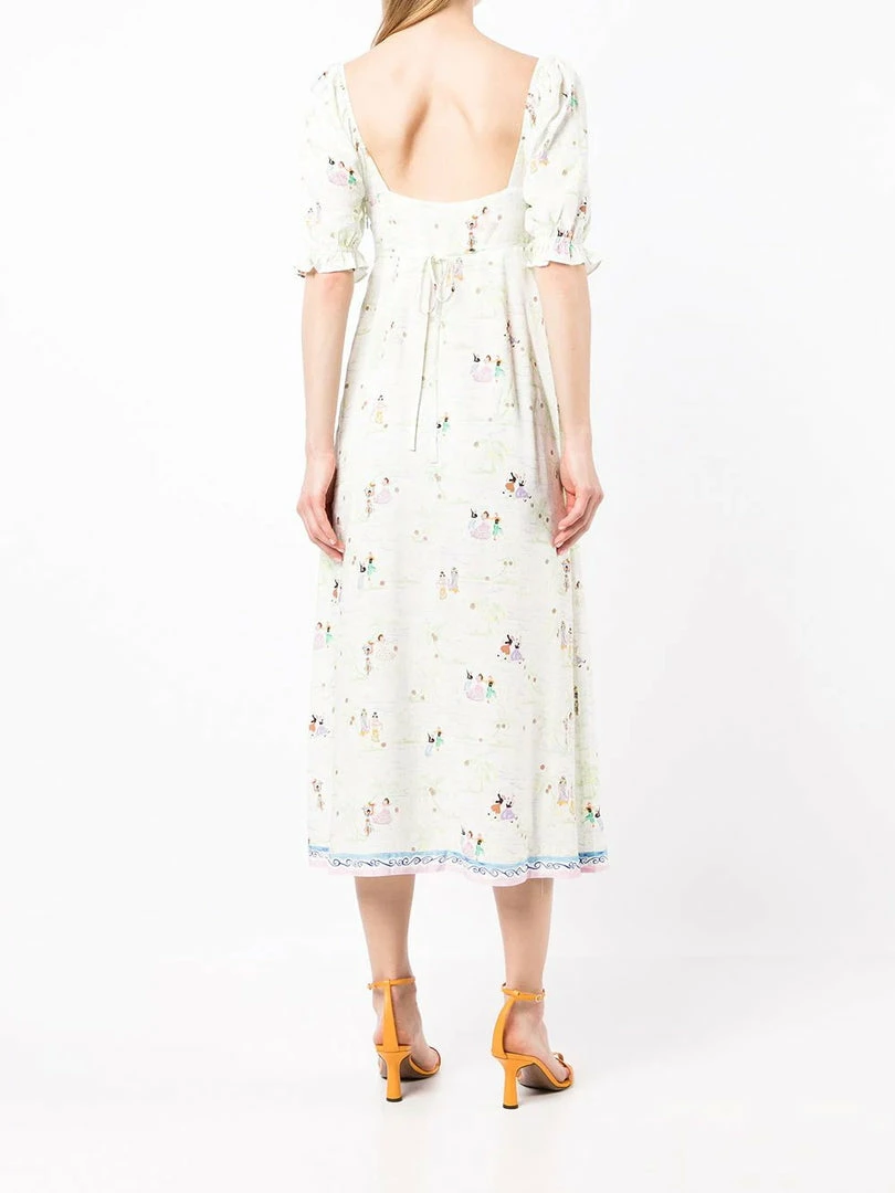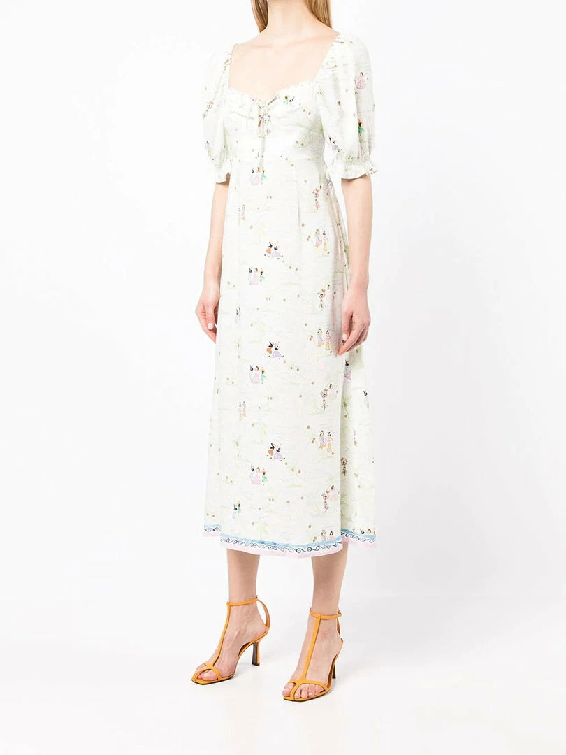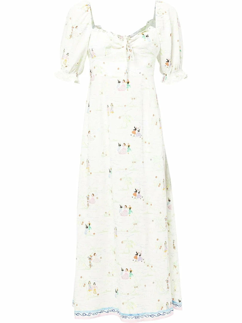 Rixo London ‘Montenegro’ Illustrated Midi Dress