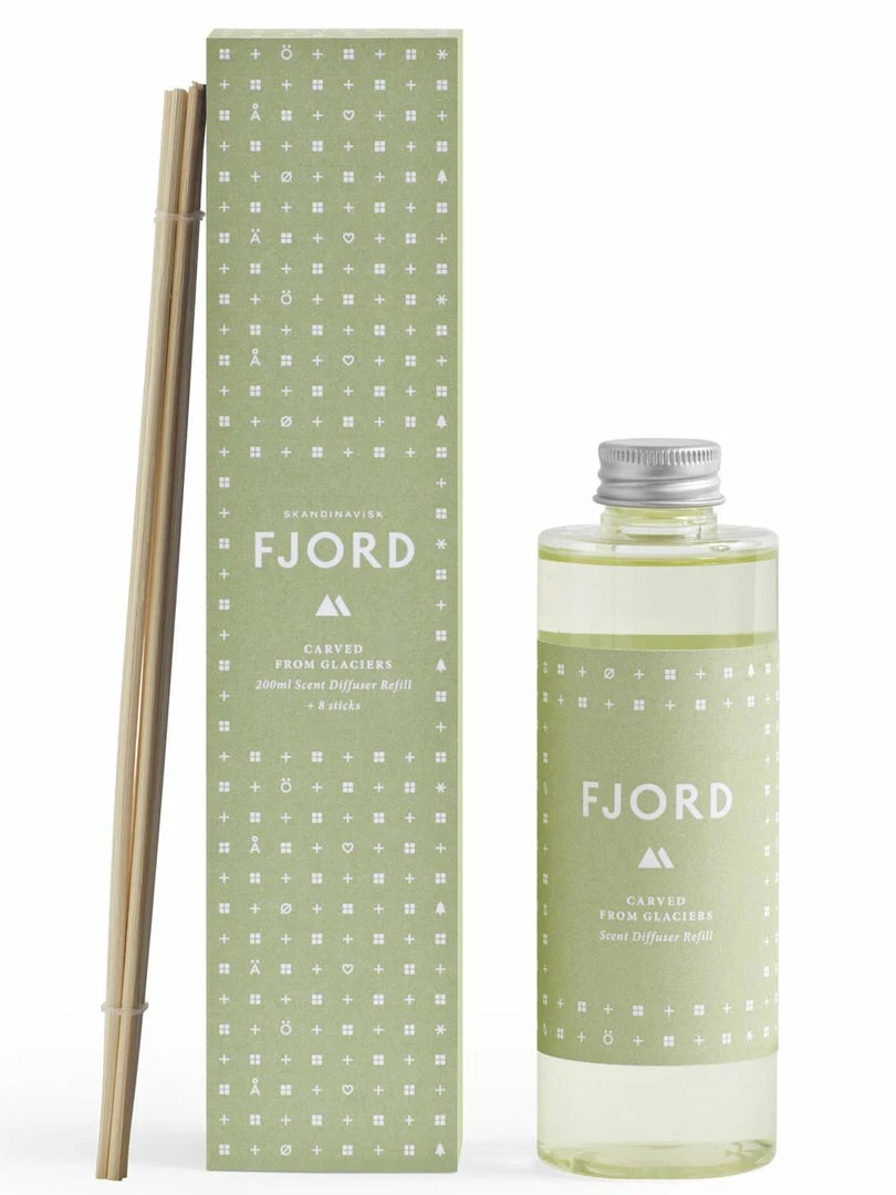 Skandinavisk’s diffusers bring subtle and stable fragrance to your home for weeks on end. To get the most from your FJORD scent diffuser remove the seal, place the sticks into the liquid – the more sticks used the stronger the scent – then rotate the sticks weekly, using a paper towel to hold them. Designed in Denmark, produced in France. 200ml perfume.