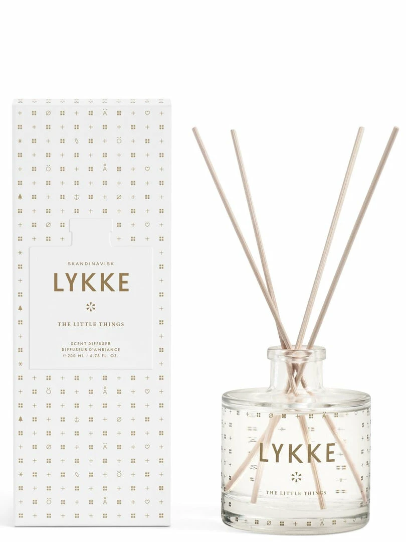 Skandinavisk’s diffusers bring subtle and stable fragrance to your home for weeks on end. To get the most from your LYKKE scent diffuser remove the seal, place the sticks into the liquid – the more sticks used the stronger the scent – then rotate the sticks weekly, using a paper towel to hold them. Designed in Denmark, produced in France. 200ml perfume (will scent a room for at least 3 months) LYKKE (LU-KURR), Danish for ‘happiness’. Renowned as the world’s happiest nation, the secret to Danish happiness is in life balance and treasuring the everyday. An optimistic moment of spring snowdrops, lemon-nettle and apple-mint.