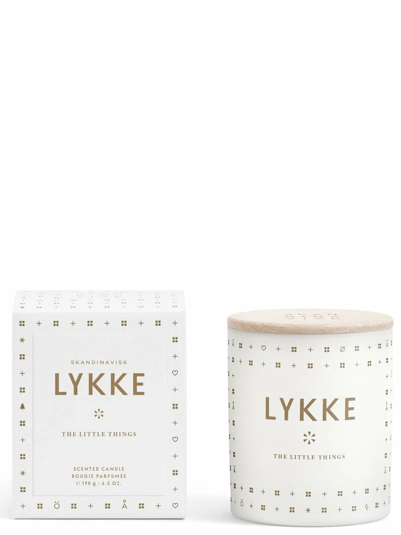 Skandinavisk LYKKE scented candle featuring a painted glass votive with a blend of perfume and vegetable wax, 100% cotton wick and engraved beechwood lid. Designed in Denmark, assembled in France. Burn time: 45+ hours LYKKE ( LU-KURR ), Danish for ‘happiness’. Renowned as the world’s happiest nation, the secret to Danish happiness is in life balance and treasuring the everyday. An optimistic moment of spring snowdrops, lemon-nettle and apple-mint.