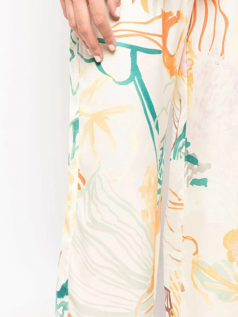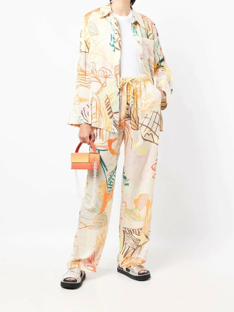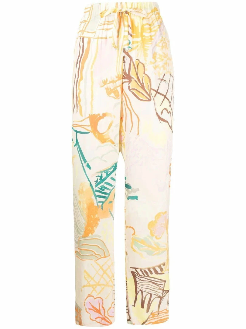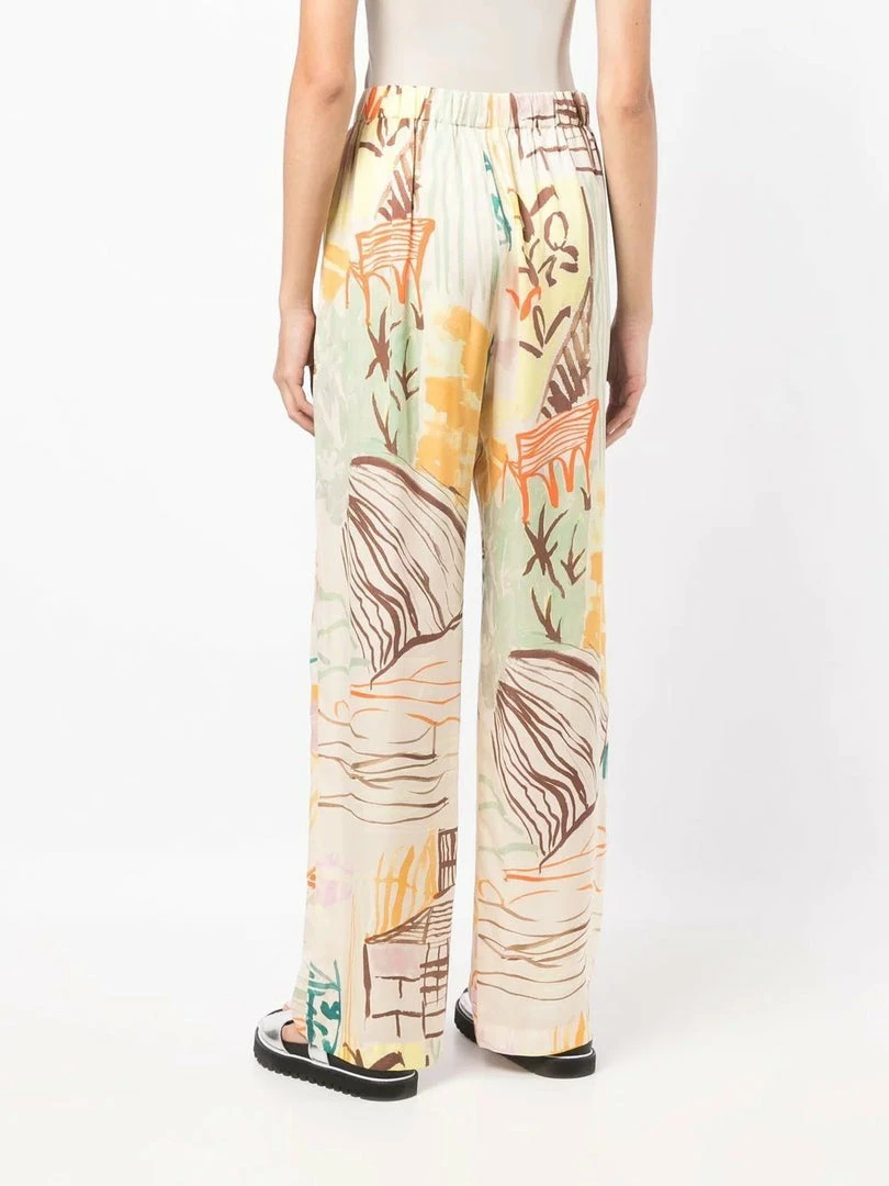 Stine Goya cream ‘Fatou’ printed trousers featuring a drawstring waist, an elasticated waistband, a multicoloured Picasso style print, a wide leg fit and pulls on. Item fits true to size. Model is wearing a size S.
