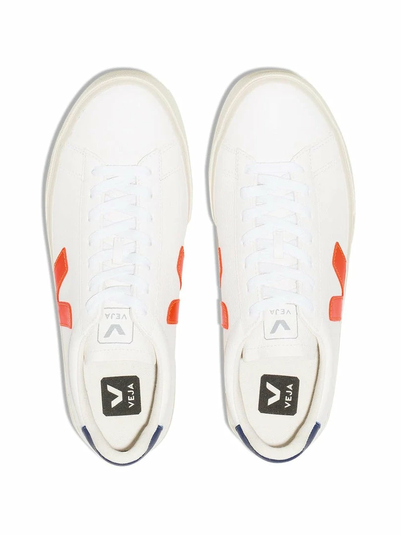 Veja ‘Blue And Orange Detail Low-Top Sneakers’ featuring a round toe, a front lace up fastening, contrasting logo details on the sides, tongue and heel counter at the rear, a branded insole and a gold logo detail to the side. Item fits true to size. Made in Brazil. European Sizing.
