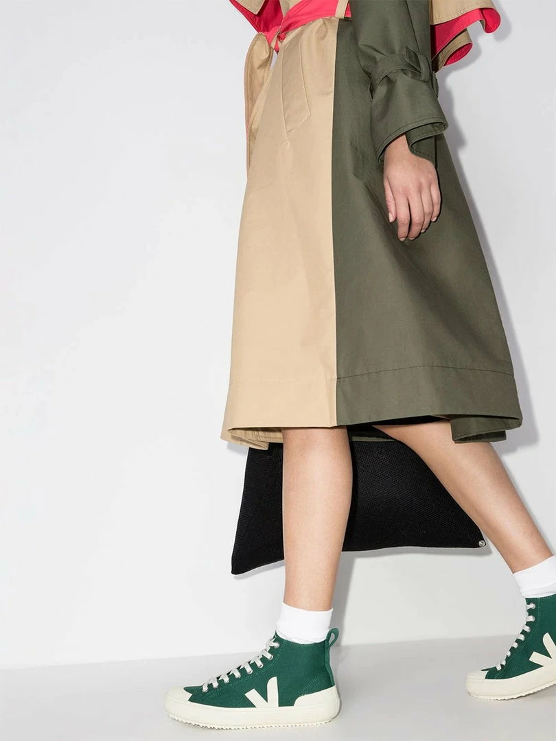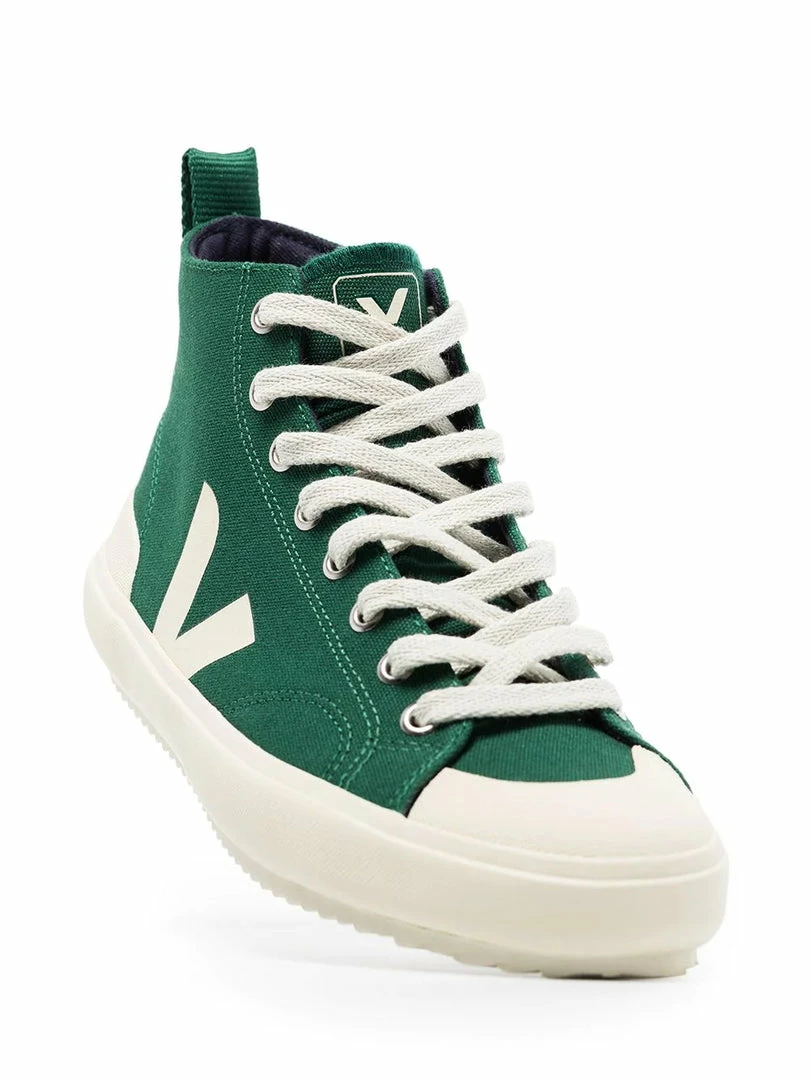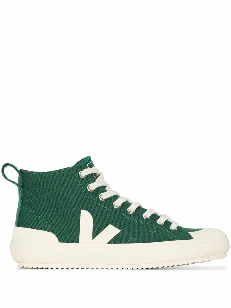 Veja green ‘Nova’ trainers featuring a round toe, a front lace up fastening, contrasting logo details on the sides and tongue, a pull tab at the rear and a high top style. Made in Brazil. Item fits true to size. European Sizing.