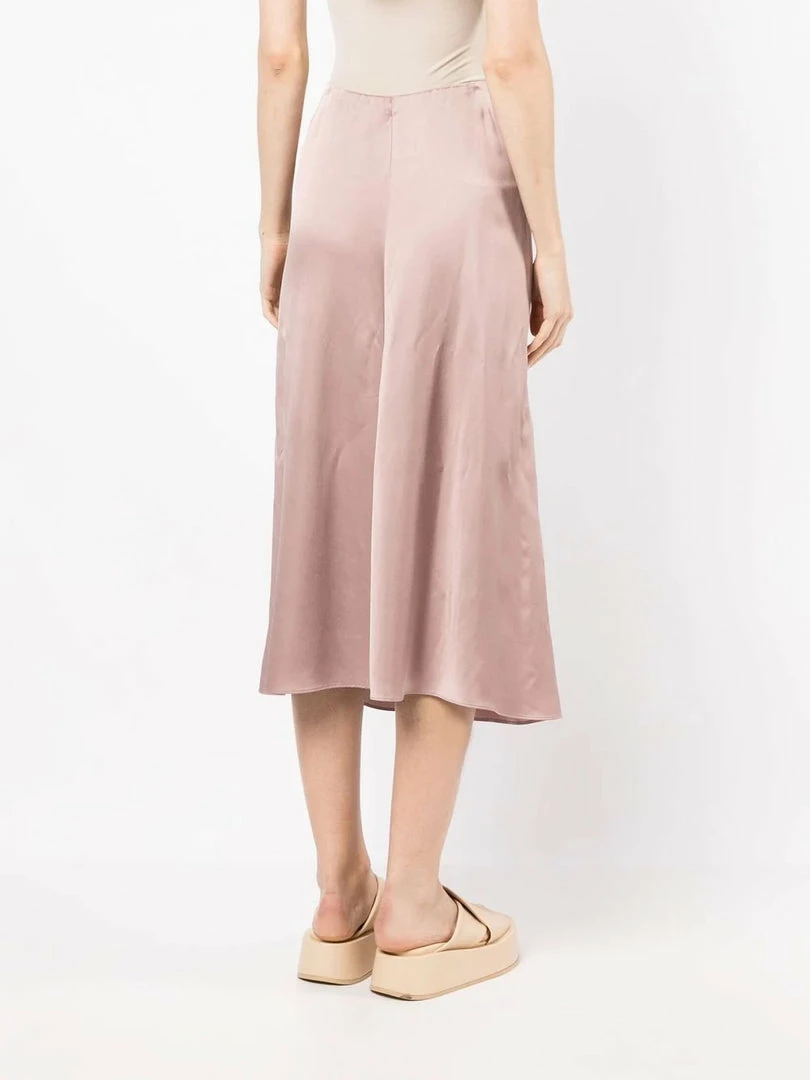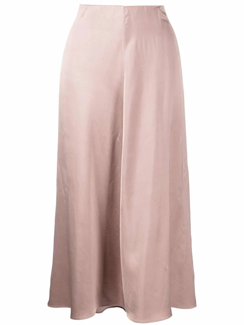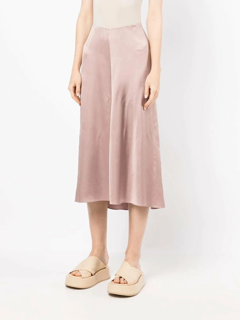 Vince dusty pink ‘Draped Pleat Slip Skirt’ featuring a back zip fastening, a high-low hemline and a midi length. Item fits true to size. Model is wearing a size 6 US.Â