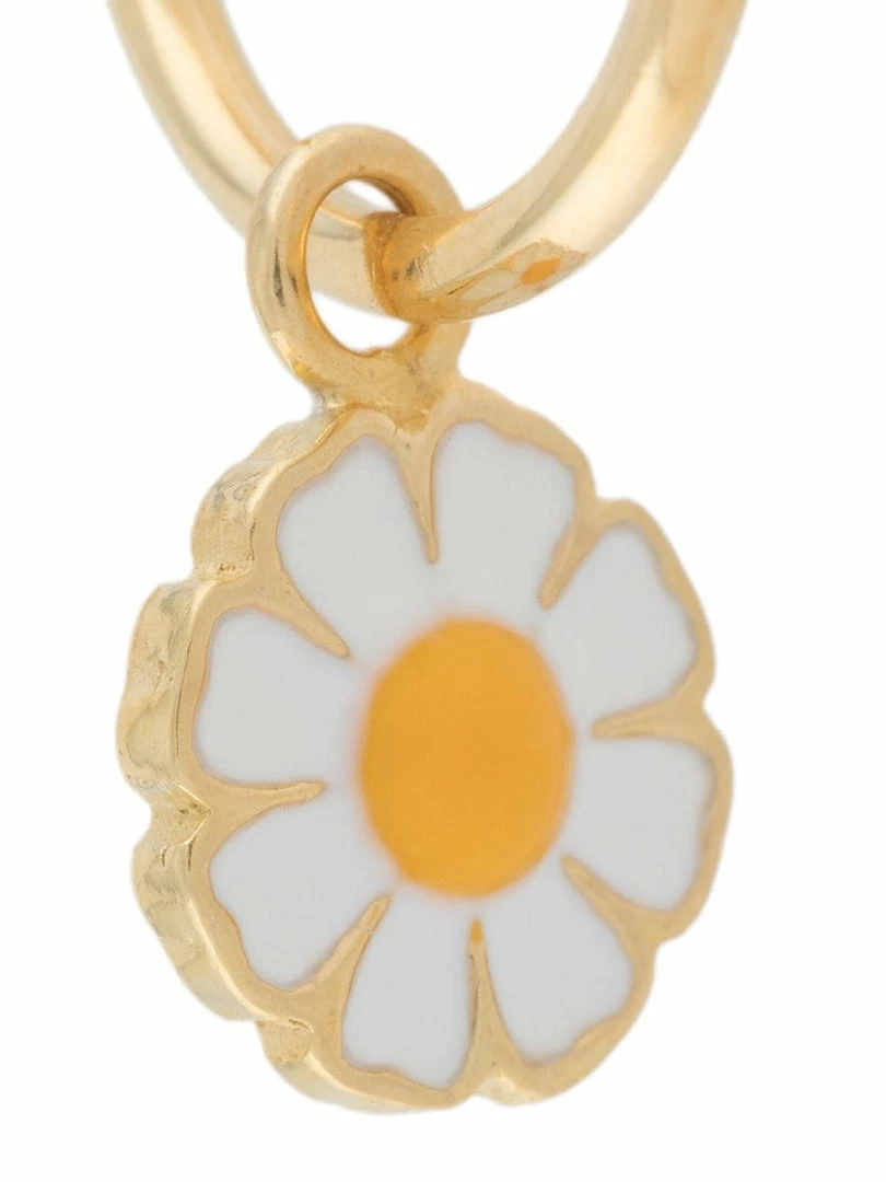 Wilhelmina Garcia ‘White Daisy Hoop Earring’ featuring a white and yellow daisy charm, a hinged hoop fastening and gold tone hardware. Item comes as a single earring. Made in Spain.